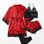 Pijama De Noapte Rosie din Satin cu Dantela cu 4 Piese : Halat, Pantaloni Scurti si Lenjerie Intima